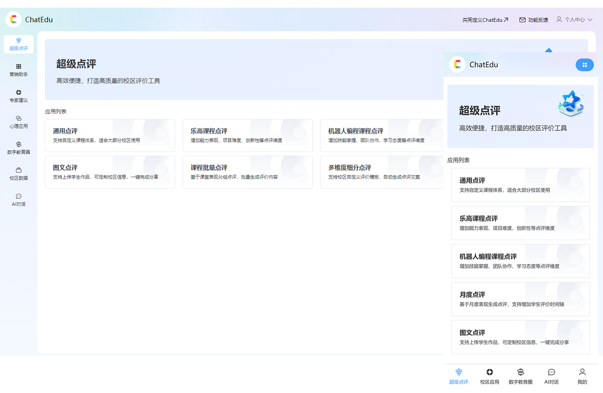 从个性化互动到自动课堂评估,再到创新的互联网内容创作,ChatEdu赋能教育者,简化任务,促进专业成长。用无缝对接的人工智能开启教育的未来。